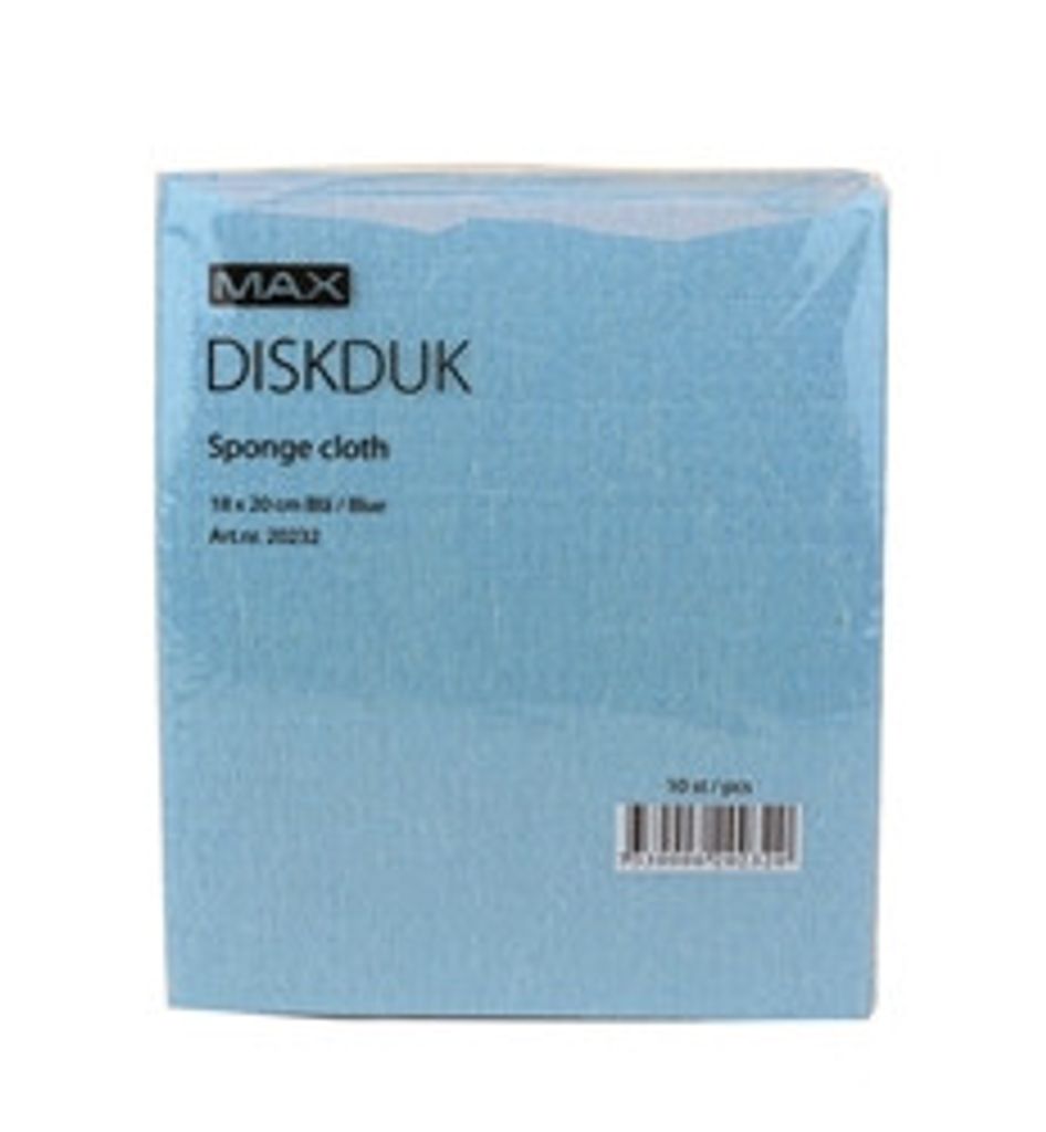MAX Diskduk. Svampduk för fräsch och effektiv rengöring. Absorberar 15 gånger sin egen vikt.. Används fuktig. Smidig att använda, lätt att s kölja ur. Tvättbar i 95°C. 100% naturmaterial (cellulosa och bomull). Biologiskt nedbrytbar.