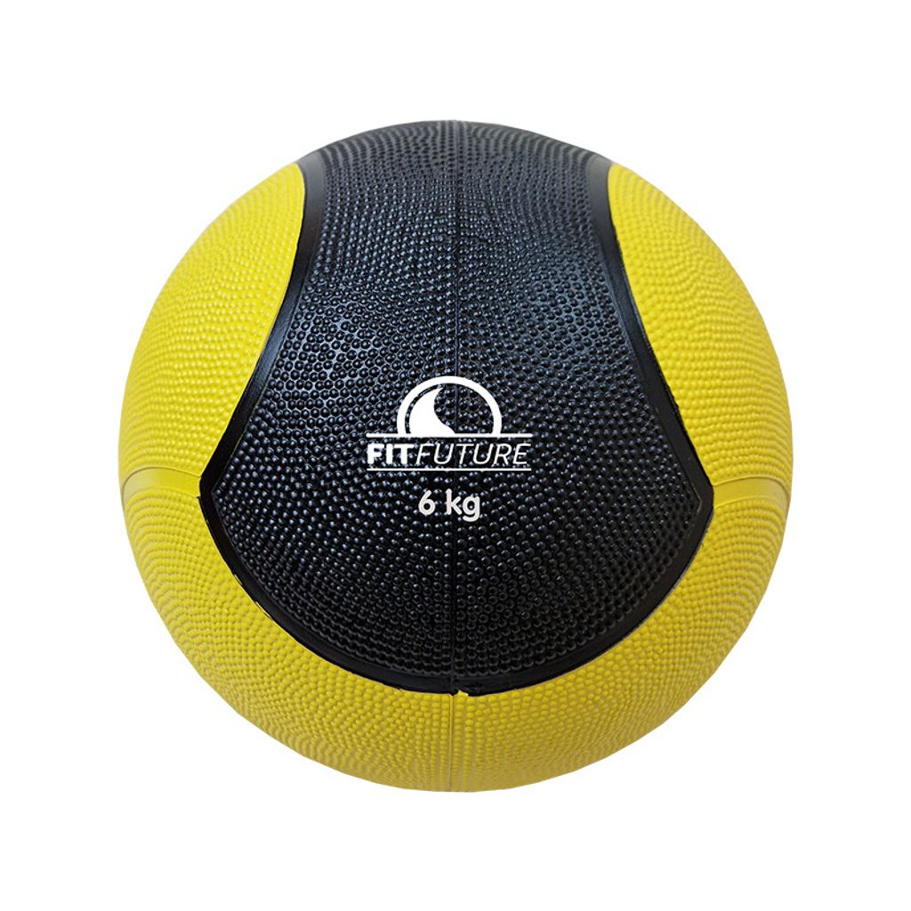Beskrivning av Medicinboll Fitfuture 6 kg, svart/gul Medicinboll i gummi med trevlig design. En mindre boll med ventil där du själv kan styra hur mycket studs du vill ha på bollen. Perfekt för styrketräning och rehab. Premiumboll.