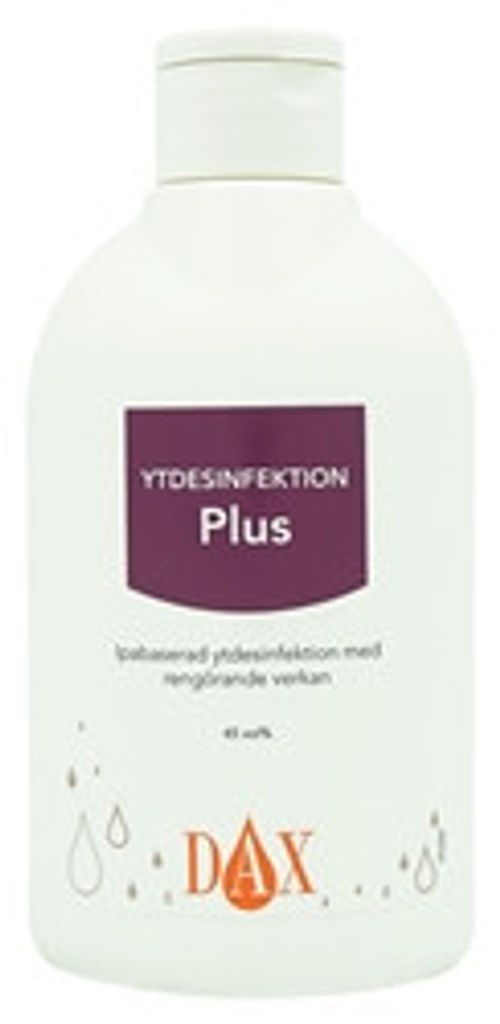 Beskrivning av Ytdesinfektion Plus Dax IPA 300ml m tensid IPA baserad ytdesinfektion med rengörande verkan. 45%isopropylalkohol. Färdig brukslösning. Uppfyller EN1276, EN1650, EN13697, EN14348 samt har effekt på Human Rotavirus och Adenovirus.